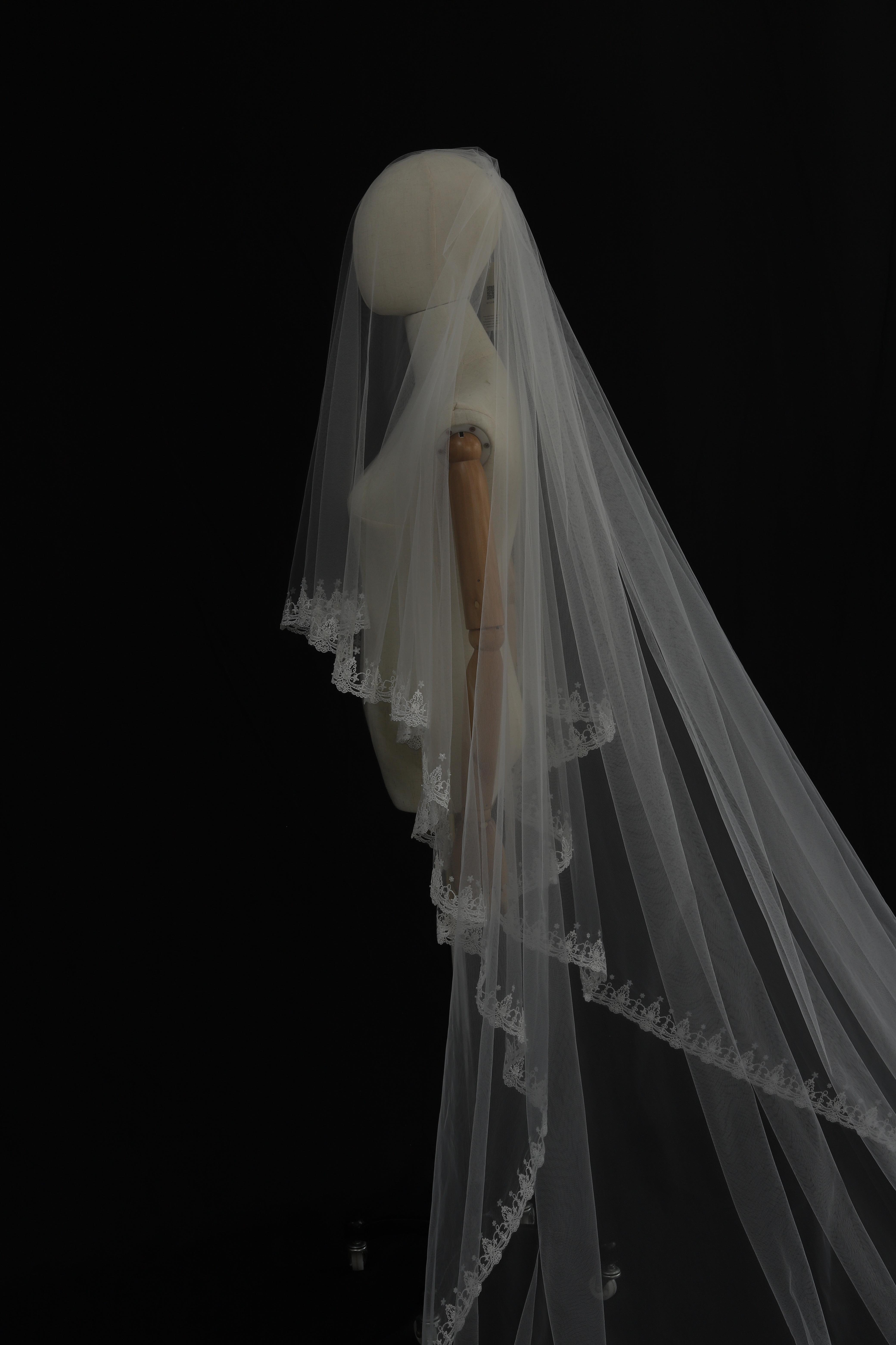 Timeless Beauty Floral Lace Wedding Veil with Elegant Trim