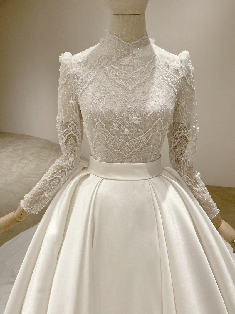 Charming Lace High Neckline Long Sleeve Ballroom Wedding Dress Eternal Dream