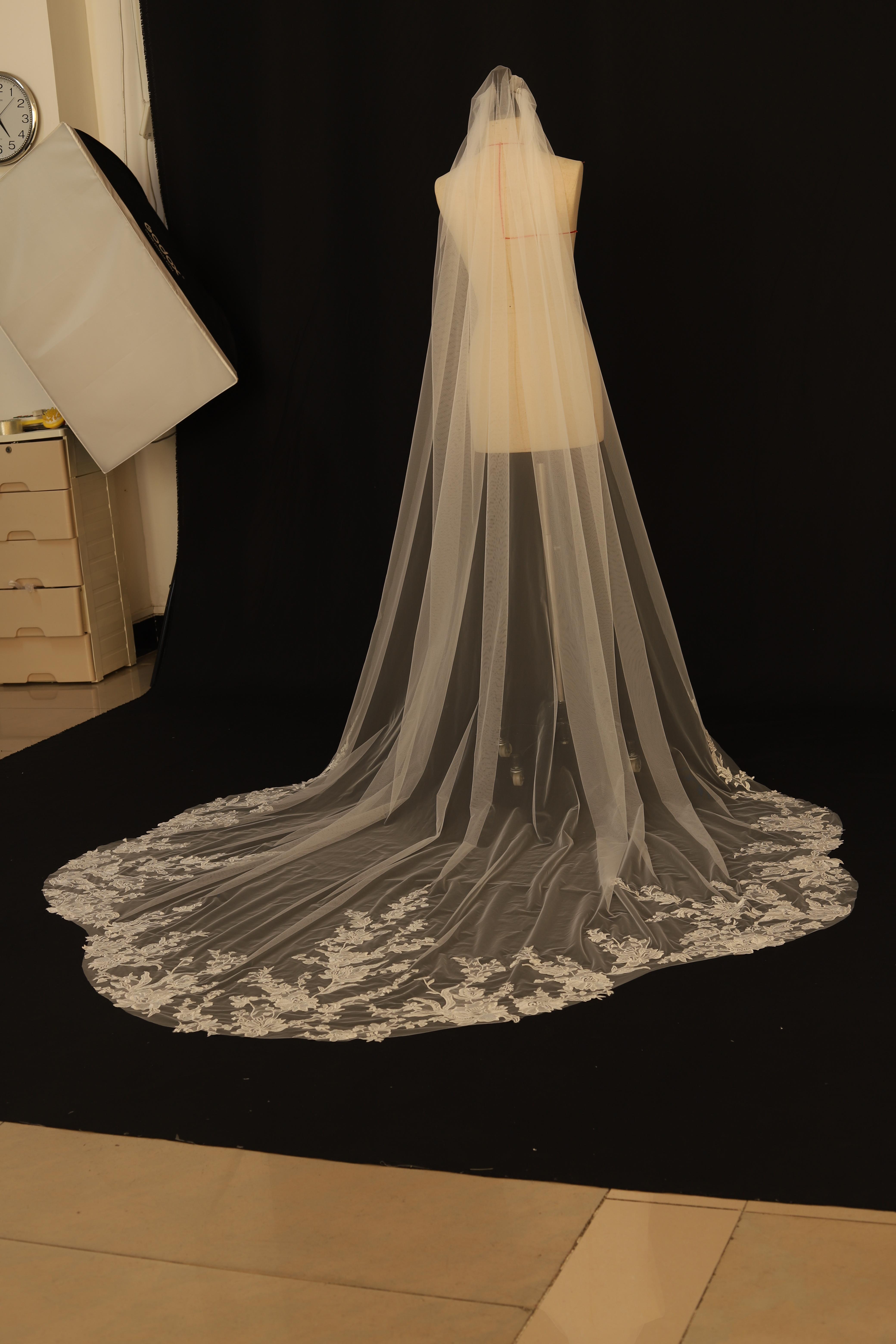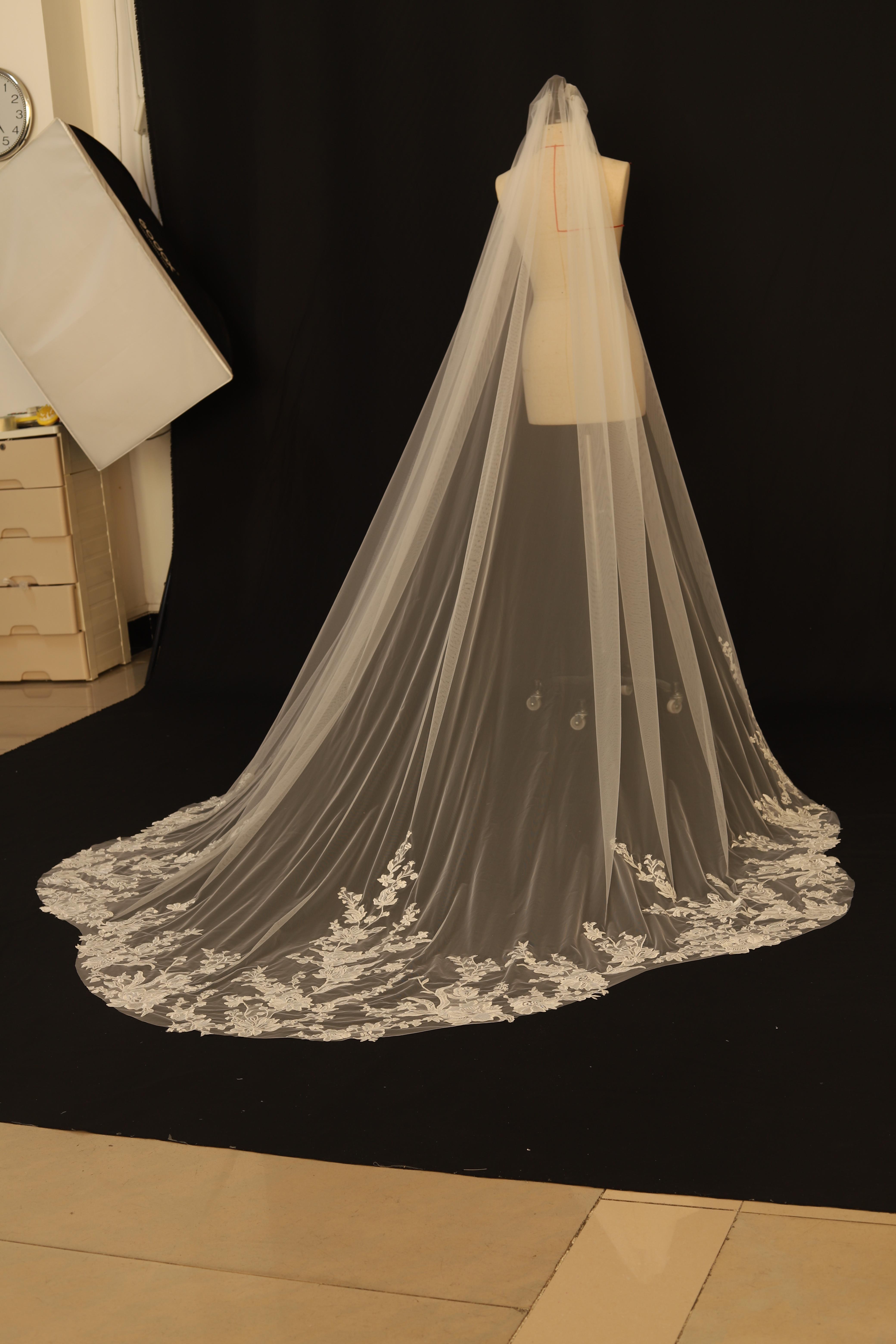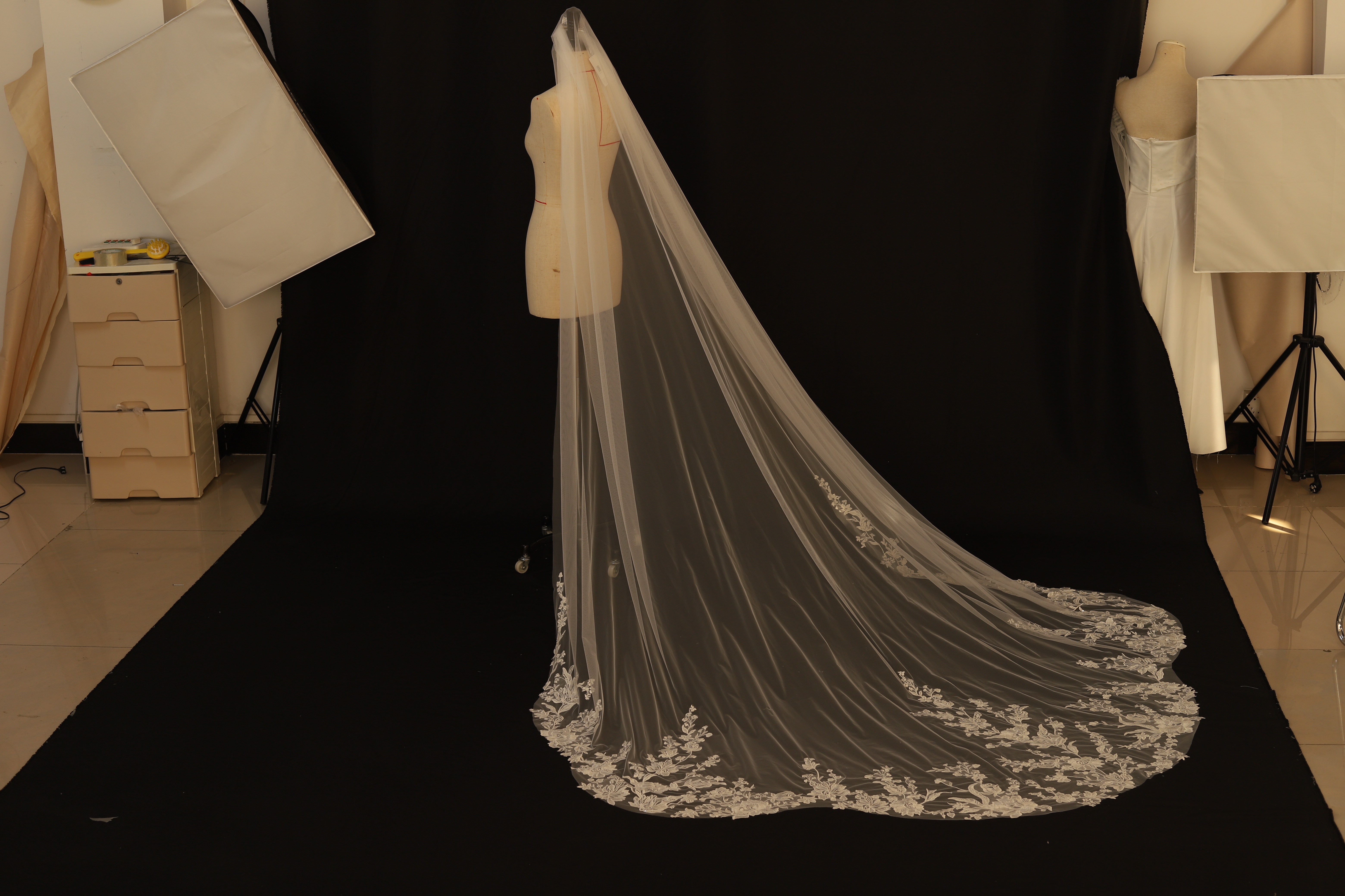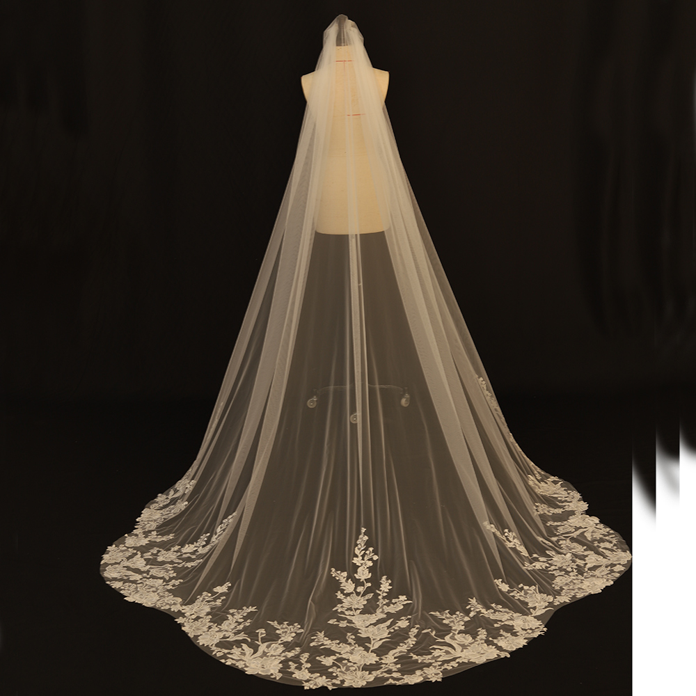 Fairytale Romance Princess-Length Bridal Veil with Embroidered Florals