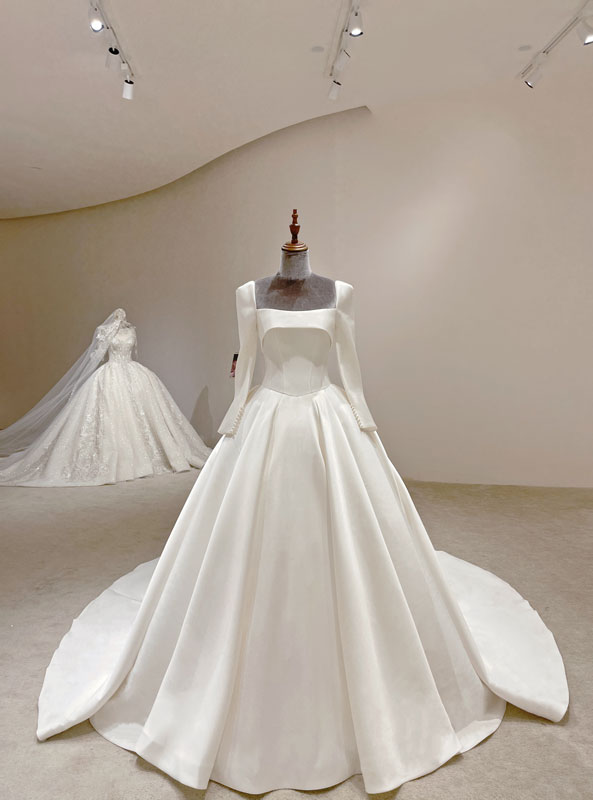 Elegant Satin Sweetheart Neckline Fit and Flared Wedding Dress Timeless Beauty