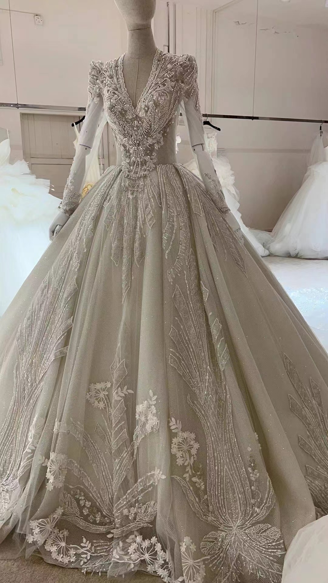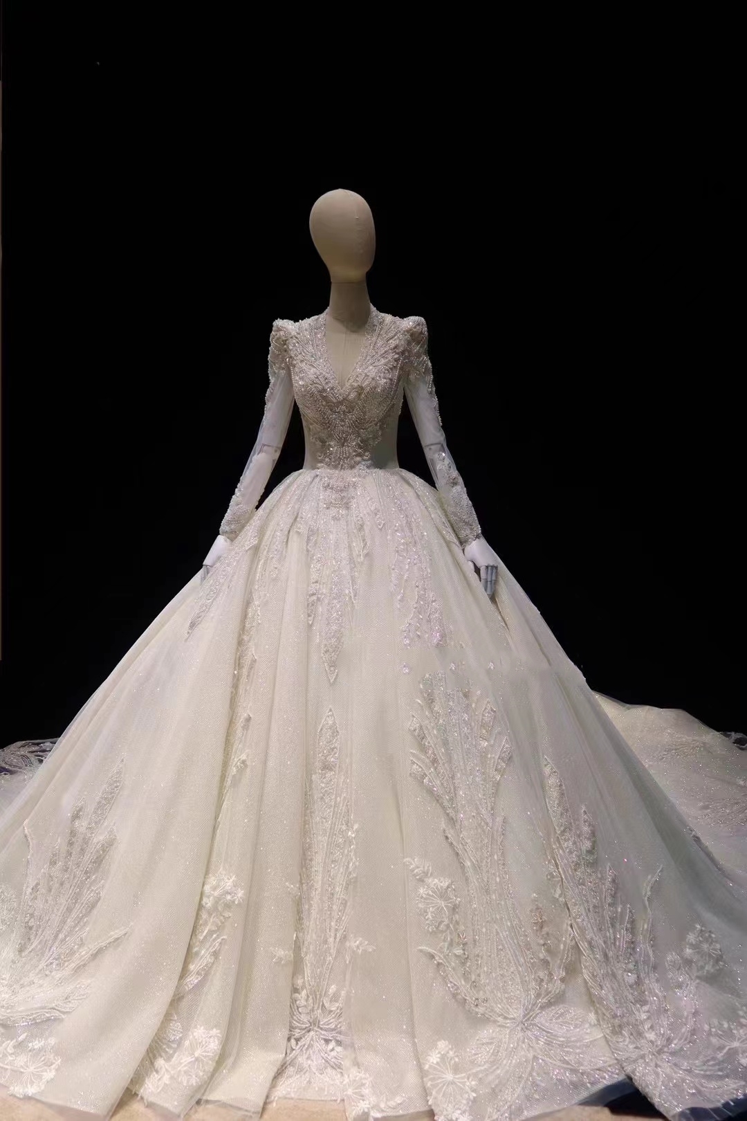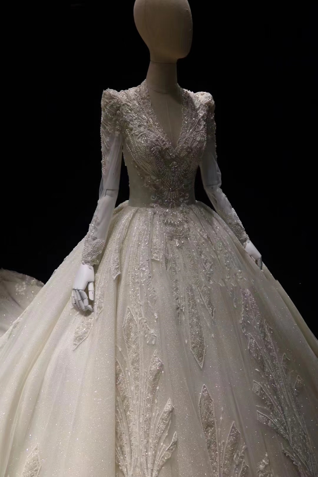 Elegant And Dignified Sequined Long-sleeved Bridal Gown Wedding Dress