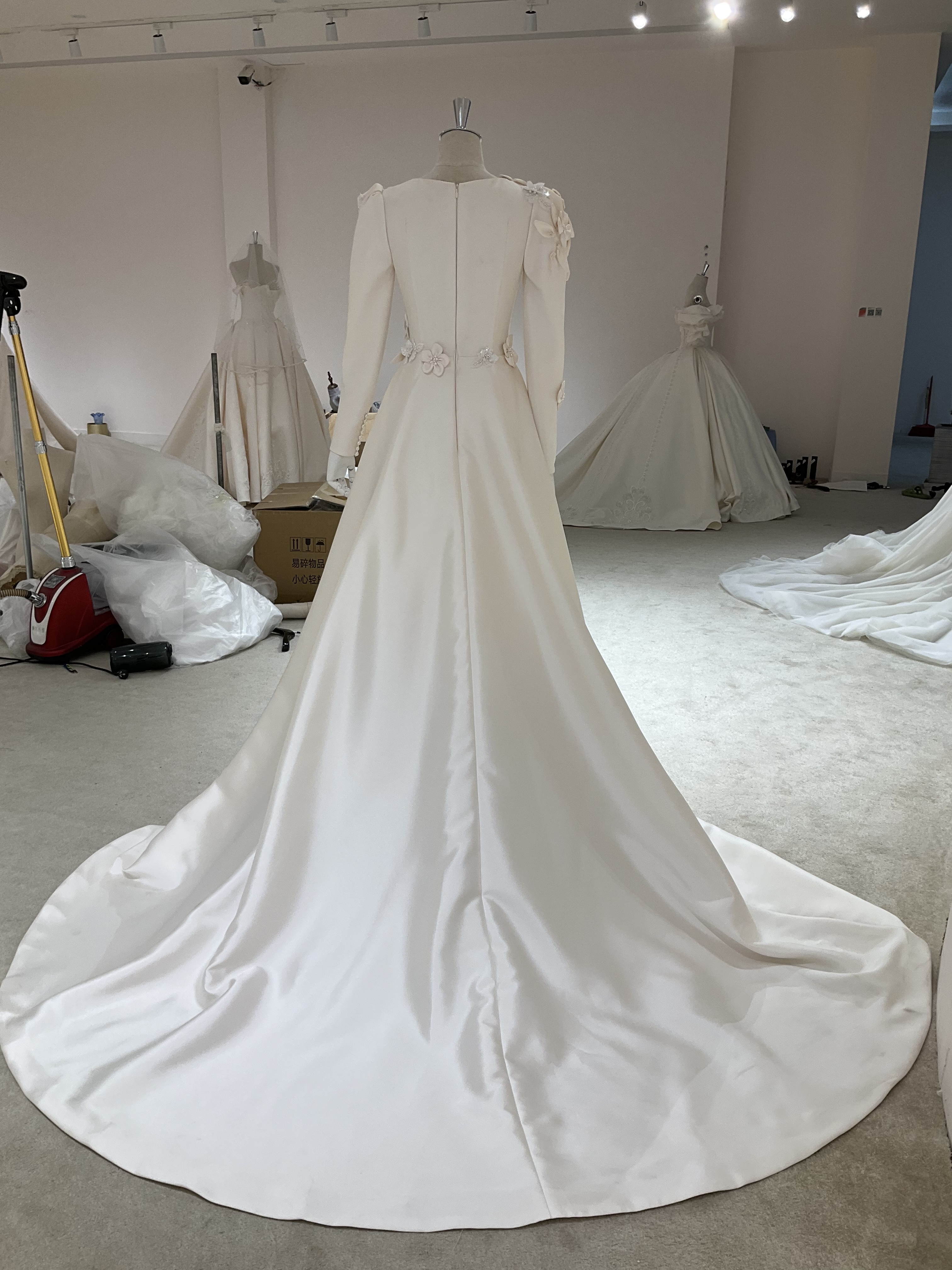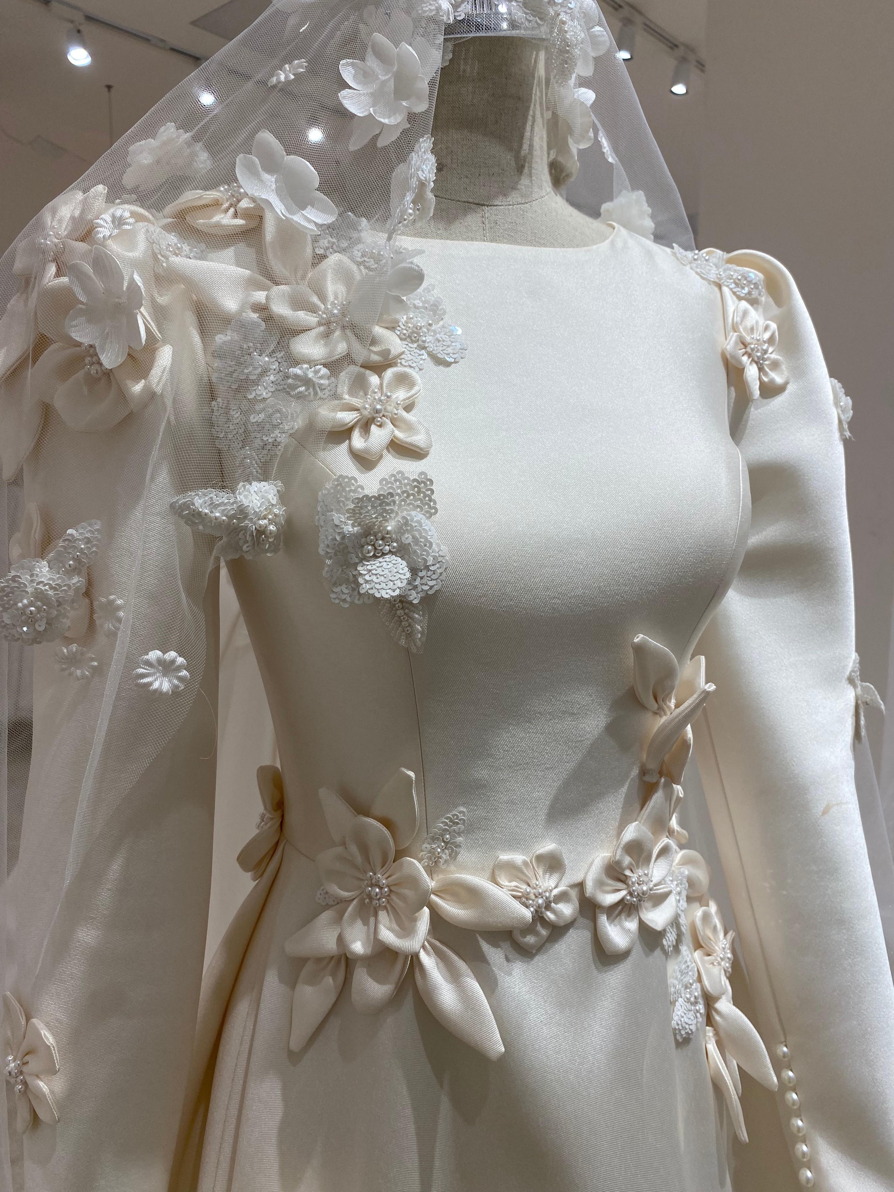 Fashion Long Sleeve Round Neck Handmade Flower Wedding Dress