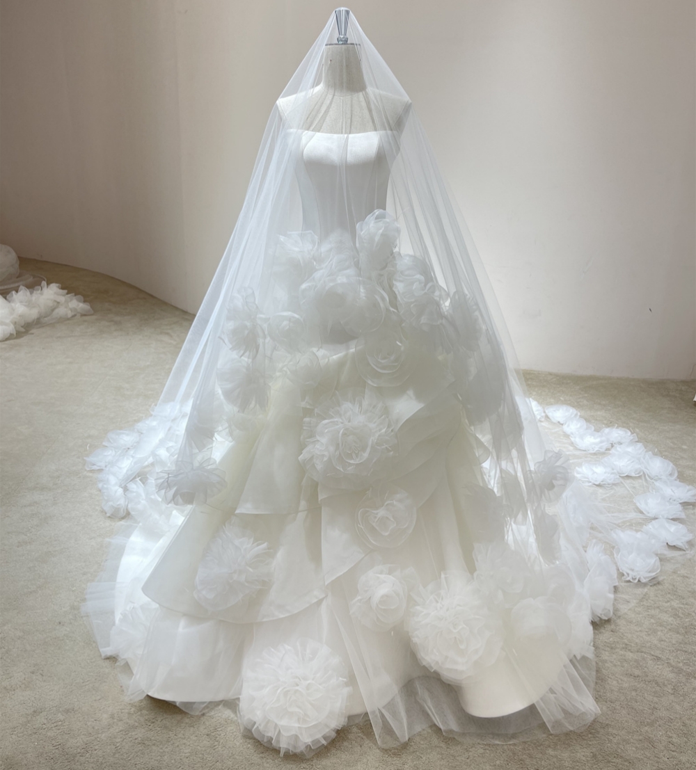 Satin Elegance Off-The-Shoulder Princess Bridal Wedding Dress with Dainty Bow Detail