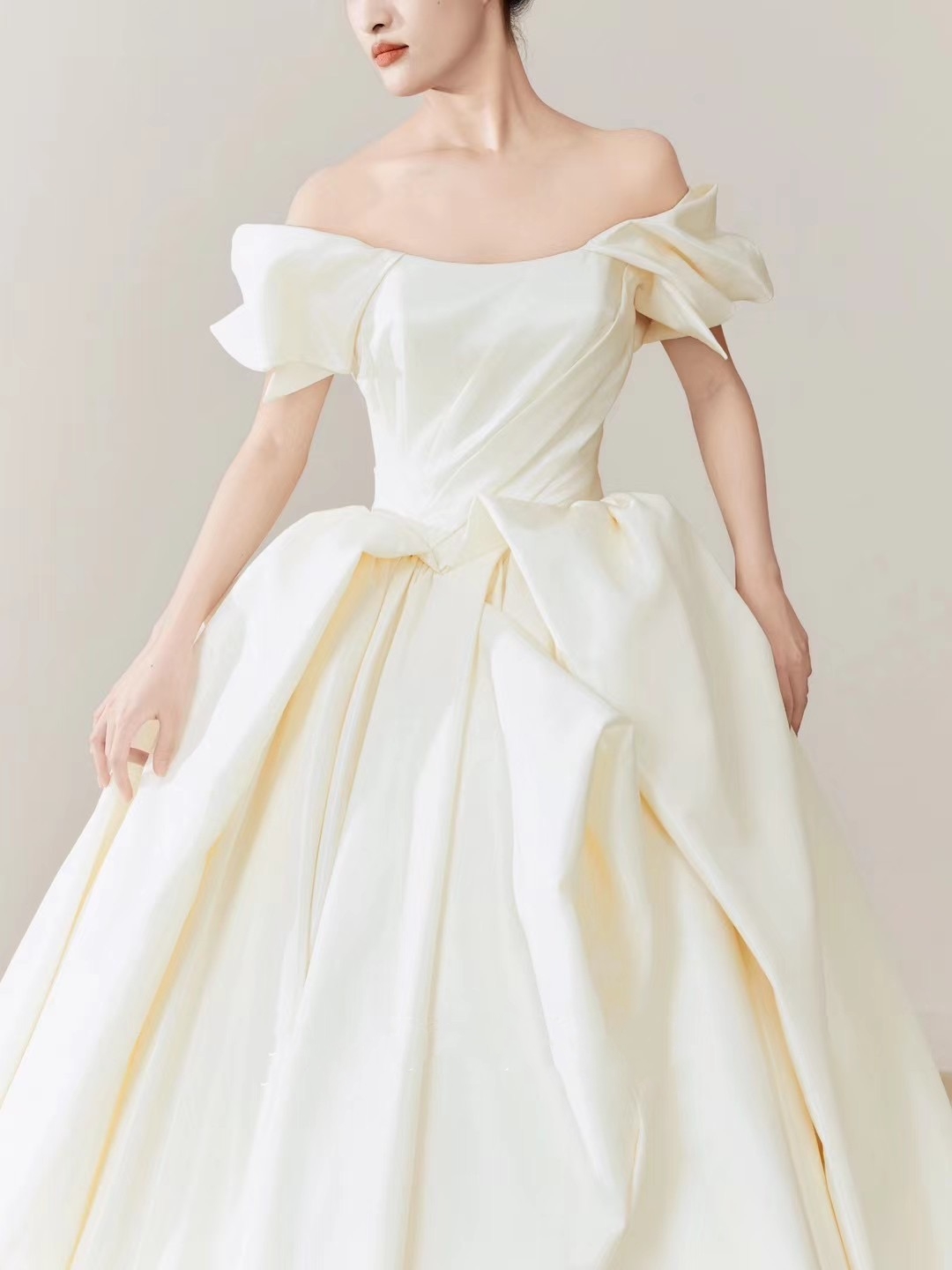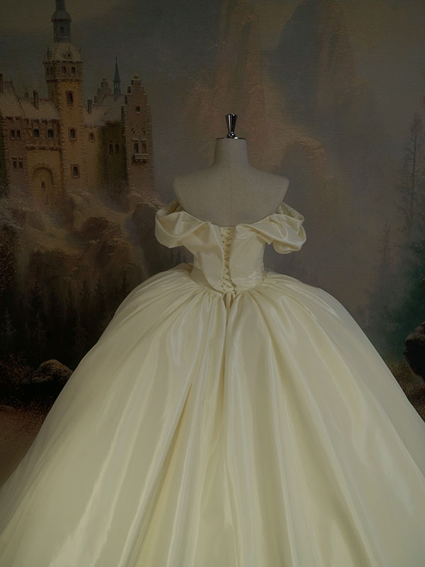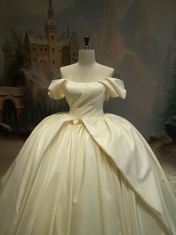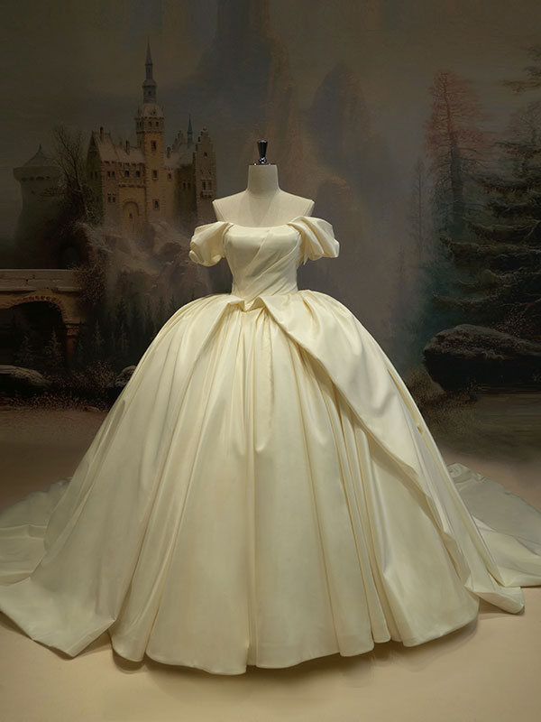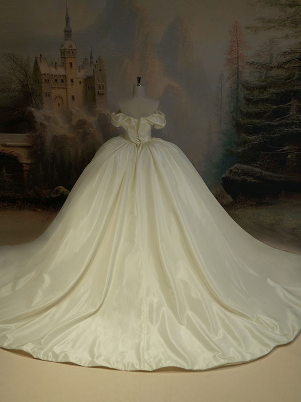 Romantic Satin Cascade Cascade Ruffle Ball Gown Wedding Dress with Satin Accents