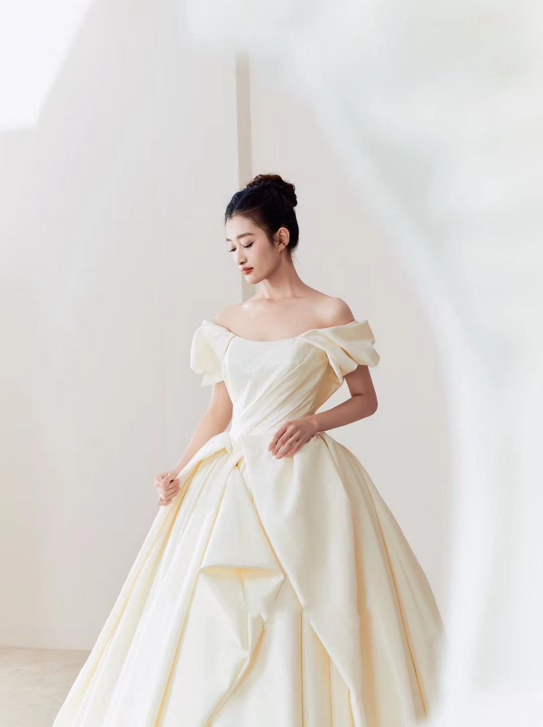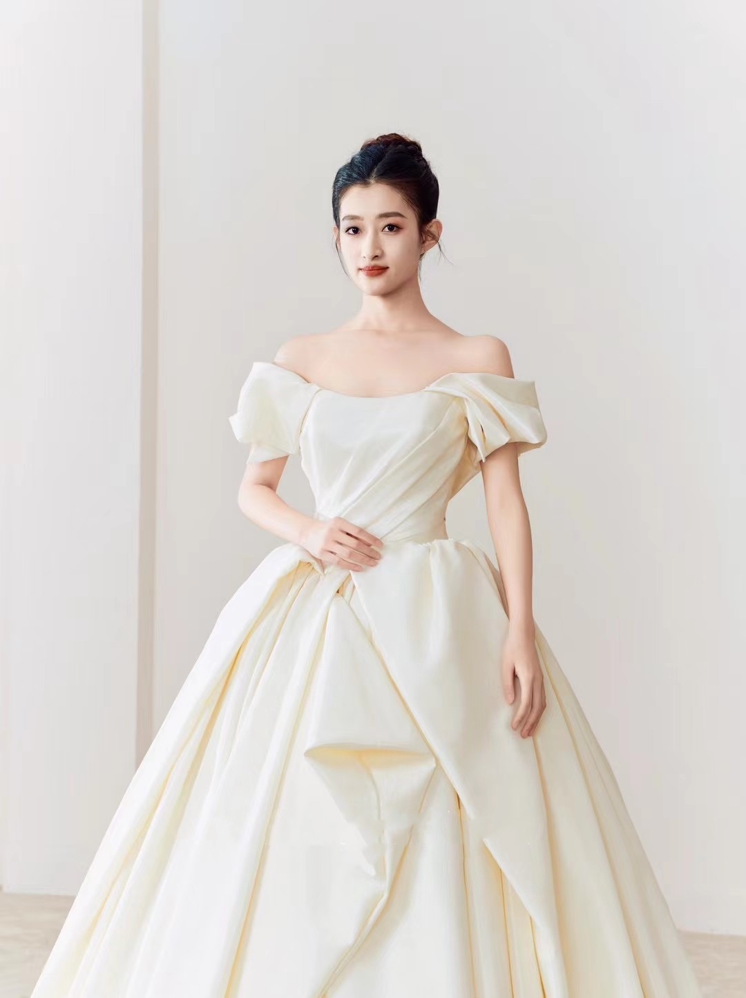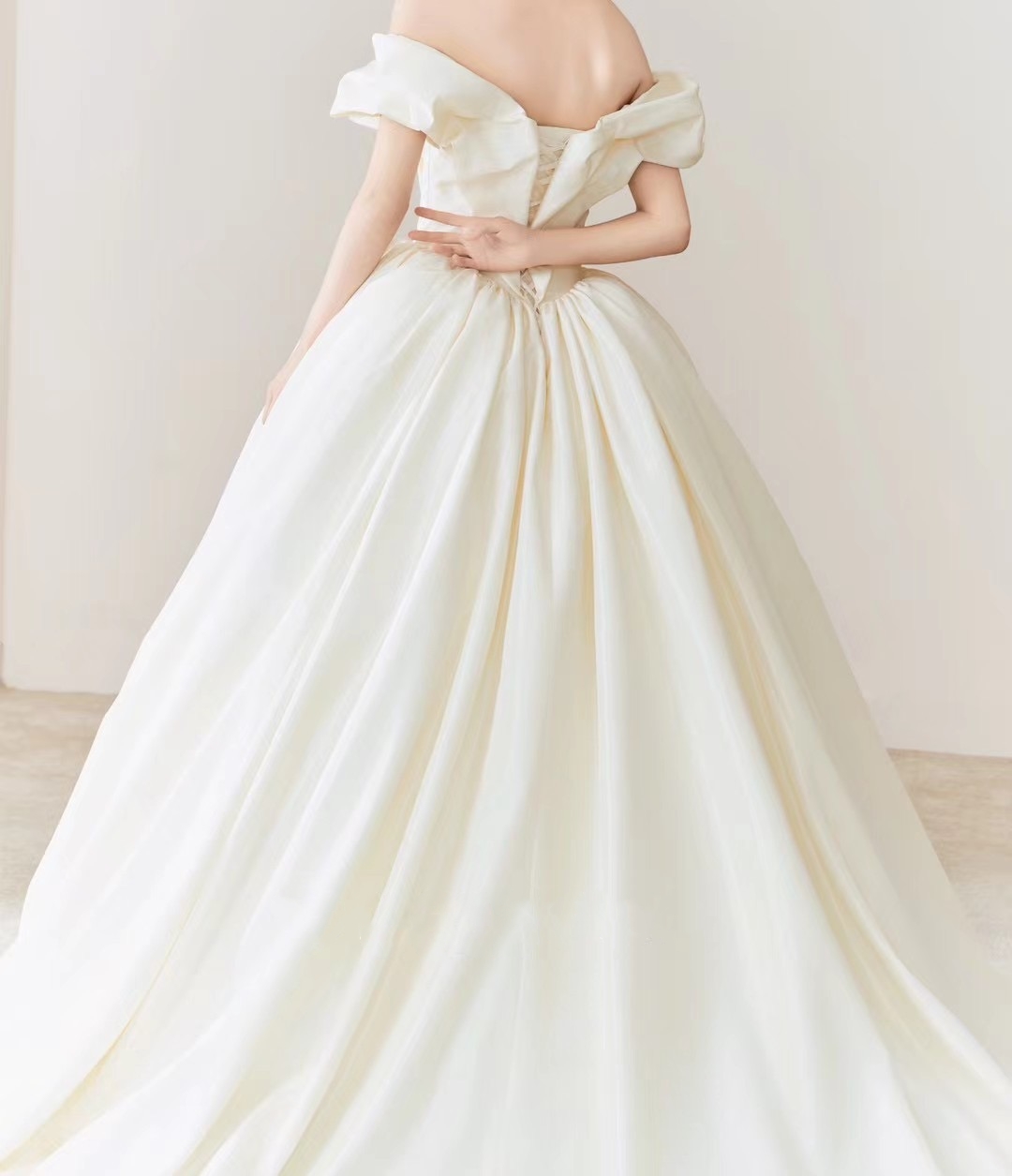 Romantic Satin Cascade Cascade Ruffle Ball Gown Wedding Dress with Satin Accents