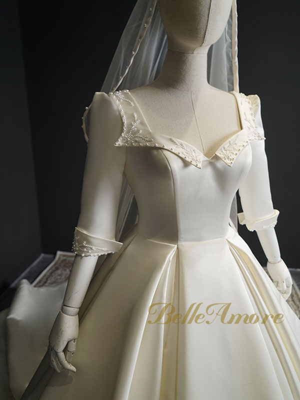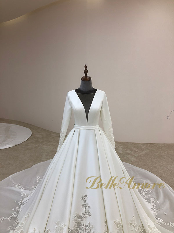 The choice of fabric plays a significant role in the overall look and feel of a wedding dress. We'll explore popular fabrics for long-sleeve dresses, guiding brides on how to choose the right fabric for the desired style and comfort.