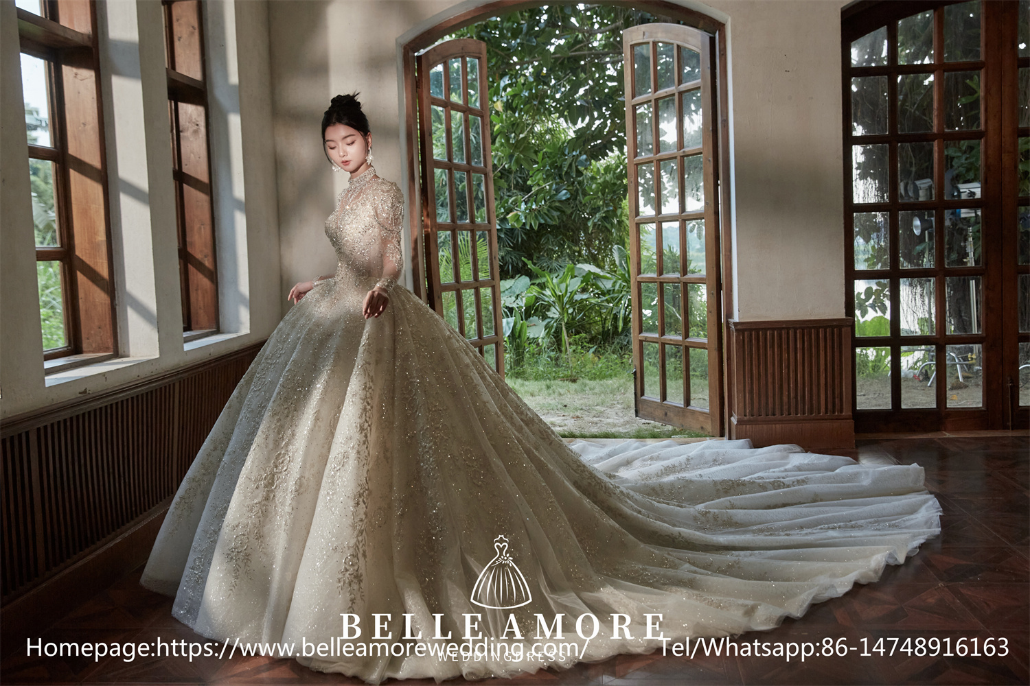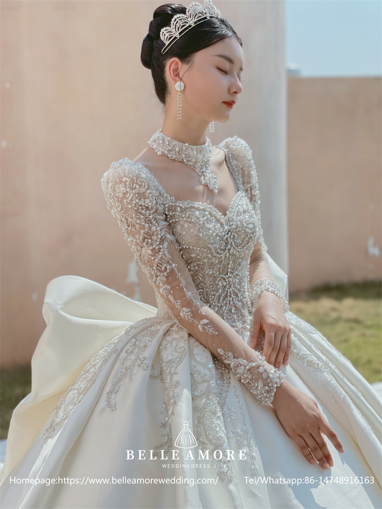 A high neck offers a modest yet regal look. Combined with long sleeves, a high neck wedding dress can exude a vintage or classic vibe, perfect for traditional brides.